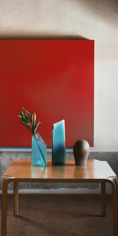 The name Kado unites two evocative concepts from Japanese culture: 角 (kado — angle or corner) and 華道 (kado — the art of flower arrangement). This dual reference finds expression in an essential composition where every element is defined by proportion, presence, and emptiness. Inspired by ikebana, the collection redefines the vase as a silent architecture — one that guides the gesture and welcomes the floral arrangement. Surfaces articulate through measured planes and subtle inclinations, creating volumes shaped by discreet geometry. In dialogue with Murano tradition, Kado is conceived so that light becomes an integral part of the design. As it travels through the glass, it reveals stratifications, depth, and chromatic variations. The collection is presented in sets of tall and low vases. The tall vase, crafted using the incamiciato technique, creates a calibrated depth between interior and exterior; its satin surface softly filters the light. The low vase, finished with moleria, offers a more diffused presence, allowing light to spread in balanced harmony. Kado establishes a measured tension between geometric rigor and compositional sensitivity, maintaining a precise equilibrium between density and lightness.