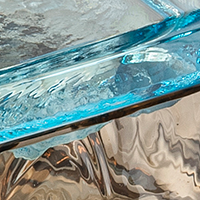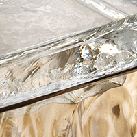 Podio unfolds as a family of vases in varying proportions, designed to generate sequences and relationships within space. Each element consists of a vase and a lid. The lid both guides the inclination of the flower and serves as a display plane, expanding the compositional possibilities. The modular system encourages aggregation and stacking, forming configurations that resemble small architectures. The vases are mouth-blown and crafted using the corteccia technique, the same employed in the lighting diffusers, which generates lenses and dynamic reflections. The surface comes alive with shifting plays of light that heighten its relationship with the surrounding space. Light diffuses through the material, imparting depth and movement. Each piece retains its own autonomy while finding completion in relation to the others. Podio maintains a measured balance between formal rigor and compositional freedom, allowing the flower to remain the true protagonist.