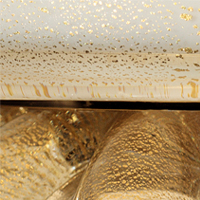 Una lampada da terra elegante ispirata ai canoni classici della simmetria e delle proporzioni, resa senza tempo dai colori caldi e avvolgenti: il diffusore opalino è beige con pagliuzze dorate, mentre varia il colore dell’elemento sferico detto “cipolla”.