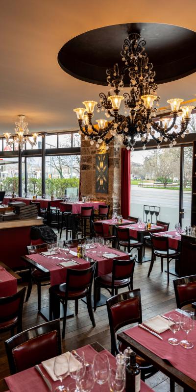 Si trova nel cuore di Ginevra, all’estremità settentrionale della pianura di Plainpalais, ed offre una cucina italiana, con un menu che spazia dalla tradizione alla modernità, a partire da specialità regionali, proposte e rivisitate dallo chef Roberto Benvegnù. Molto curata la carta dei vini, che assicura un’esperienza completa e di valore. Voluto dall’imprenditore Olivier Plan, l’intervento di ristrutturazione del ristorante ha puntato molto sull’illuminazione. La sala assume un’atmosfera intensa e sofisticata grazie a tre lampadari Venezia 1295, eleganti, sinuosi, ricchi di fascino, simbolo per antonomasia della secolare esperienza nell’arte del vetro che appartiene a Barovier&Toso. La brillantezza del cristallo veneziano parla attraverso volute, coppette e una moltitudine di dettagli ornamentali, come i pendagli, realizzati con l’antica tecnica del rostrato, inventata negli anni ‘30 da Ercole Barovier. Il lampadario centrale è più grande degli altri due ed è un modello bespoke in nero, largo 160cm di diametro. Il nero del cristallo si interfaccia al nero del soffitto, creando un interessante punto focale e un gioco ottico che richiama le opere dell’artista Anish Kapoor.