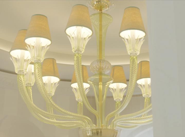 它是卡普里岛最古老的酒店,建于1822年,以其宁静的地中海氛围吸引了来自世界各地的艺术家和知识分子,包括诗 人、作家、画家和音乐家。自2023年起,它成为Oetker Collection的一部分,是意大利首家Masterpiece Hotel。由设 计师Francis Sultana精心打造的翻修工程,捕捉到了卡普里建筑的独特简约和明亮,同时融入了岛上50年代的元素和 费里尼《甜蜜的生活》的风情。酒店距离著名的Piazzetta仅几步之遥,如今拥有50间客房,其中18间为套房,所有客 房都设有私人阳台或露台。Barovier&Toso为酒店的一些公共空间增添了精致优雅的光彩。通往上层的华丽楼梯口装饰 着一盏Excelsior天花灯,采用“露水”工艺,精美地展现出金色威尼斯水晶叶片。在由多次获得米其林星级荣誉的主 厨Gennaro Esposito掌舵的Gennaro’s酒吧和餐厅,Barovier&Toso定制了一系列由Sultana设计的绿色和金色壁灯,融 合了Vertigo、Degas和4607系列的元素,创造出一款全新的、专属于La Palma酒店的独特产品。餐厅内还悬挂着一盏融 合了Vertigo、Degas、4607和Windsor系列元素的独特吊灯。酒店内绿意盎然,摆满了丰富的植物和鲜花,在大堂内, 金色威尼斯水晶制作的Bolloni花瓶更是凸显了其雕塑般的立体感。